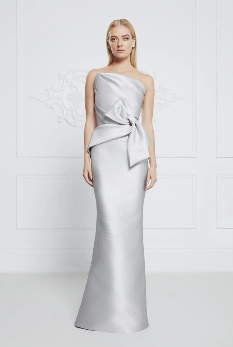 This strapless dress is as stunning as it is chic. Textured ottoman fabric.