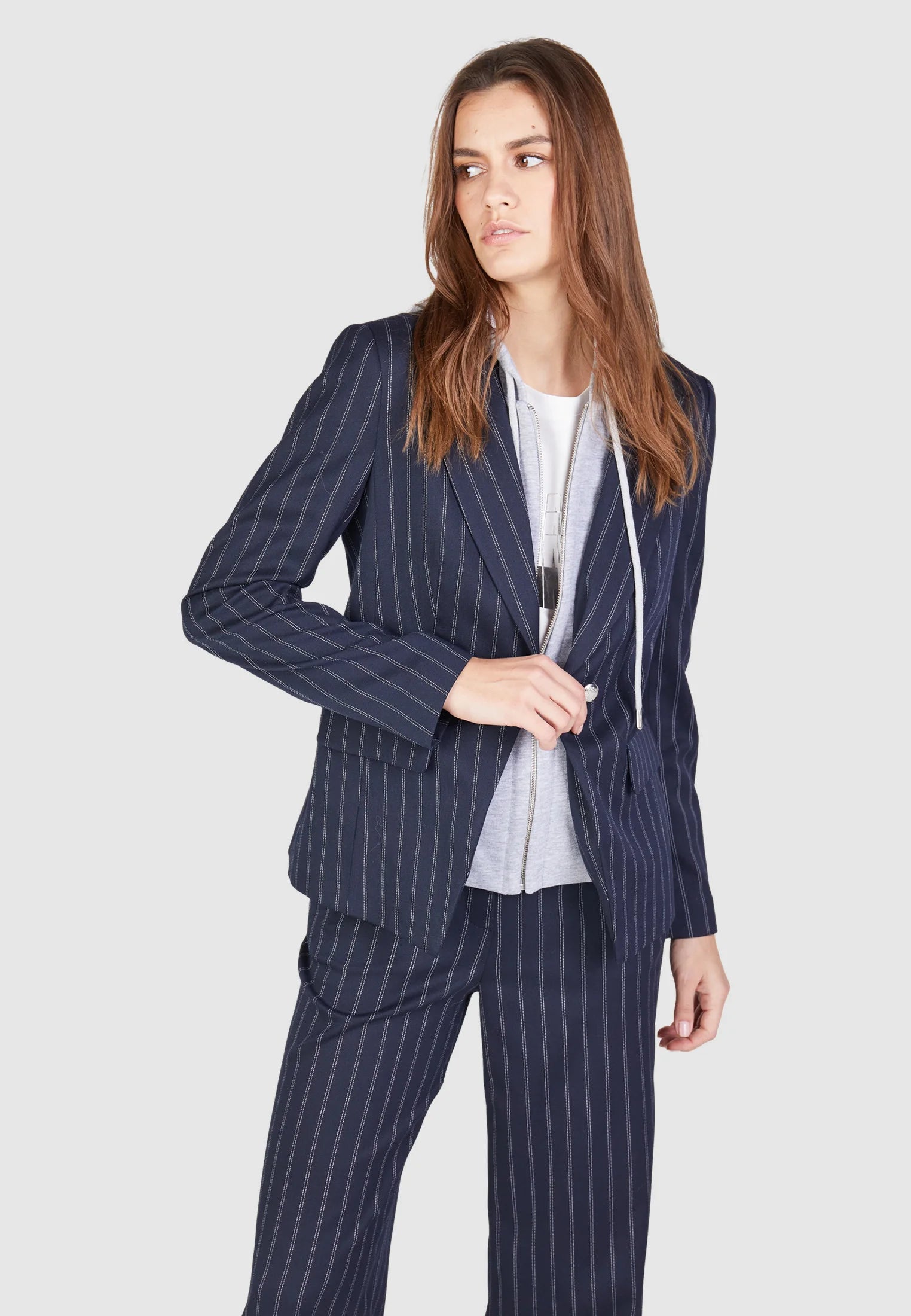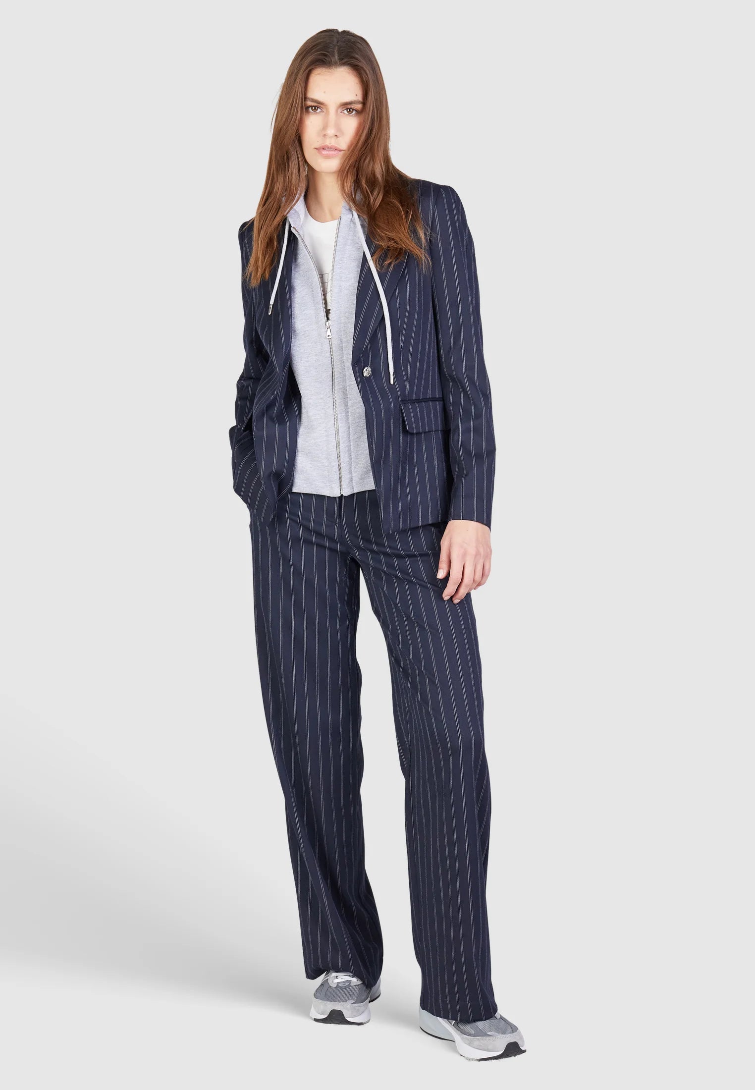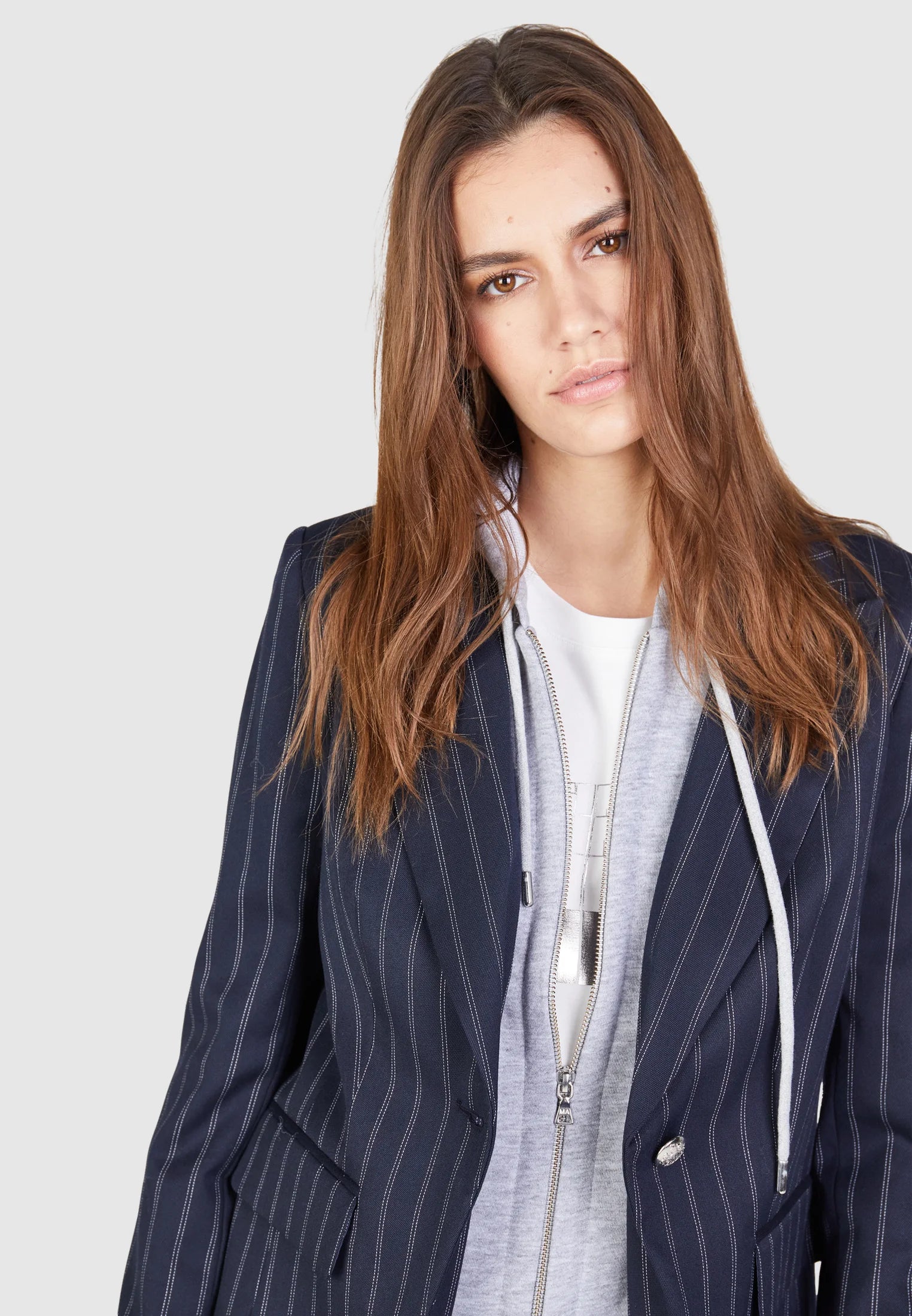 Our pinstripe blazer with integrated hood combines classic elegance with sporty comfort. The regular fit and jersey insert with zipper offer a modern take on the traditional blazer. A versatile garment that looks great in the office as well as in your free time.