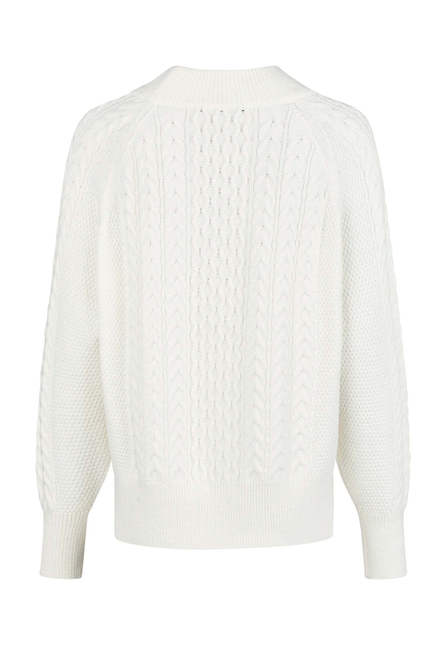 Cable-knit sweater, crafted from a cotton blend with a soft touch. The relaxed fit offers comfort and casual style. Perfect for cozy days and versatile pairing!
