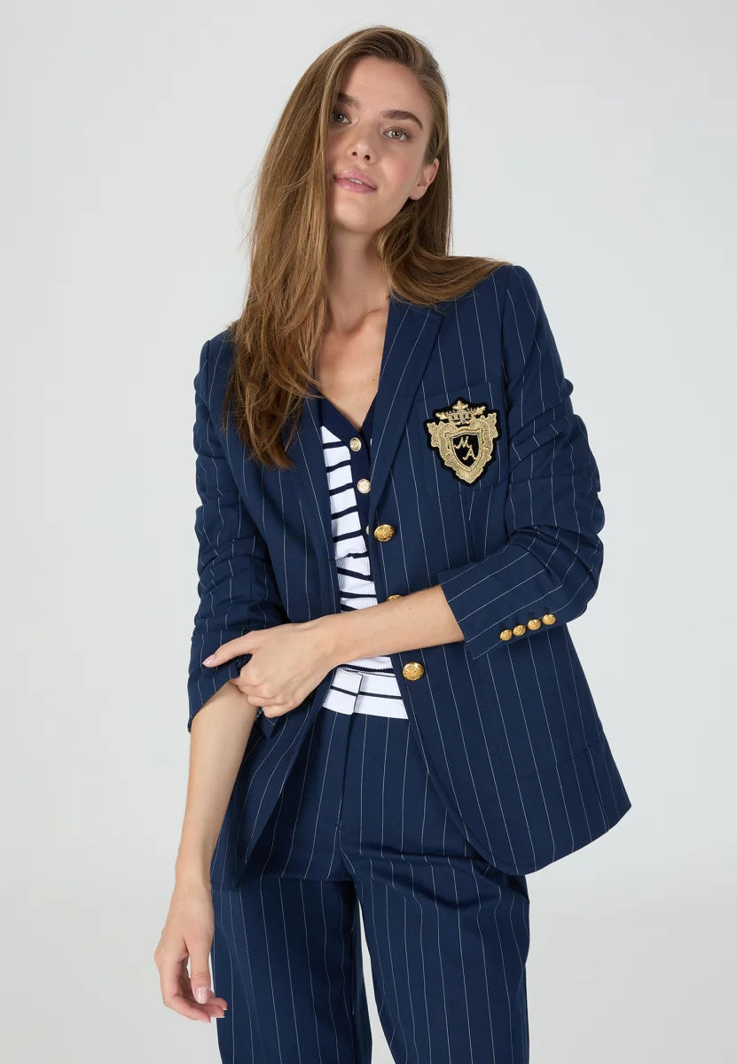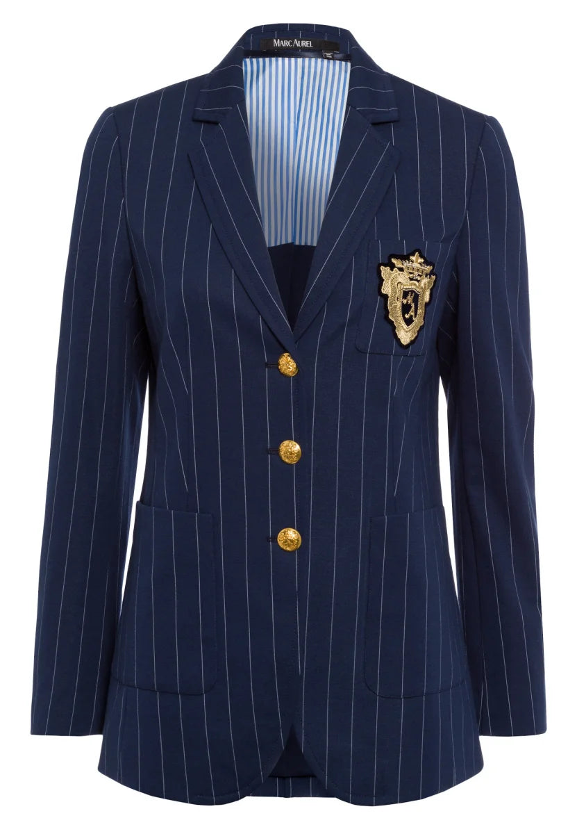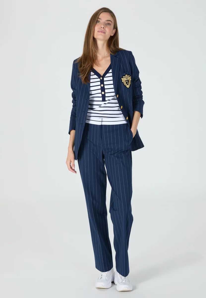 The slim blazer made from stretchy pinstripe jersey combines elegance and casual style. The high-quality cotton blend ensures comfort. A stylish essential for the office and special occasions.