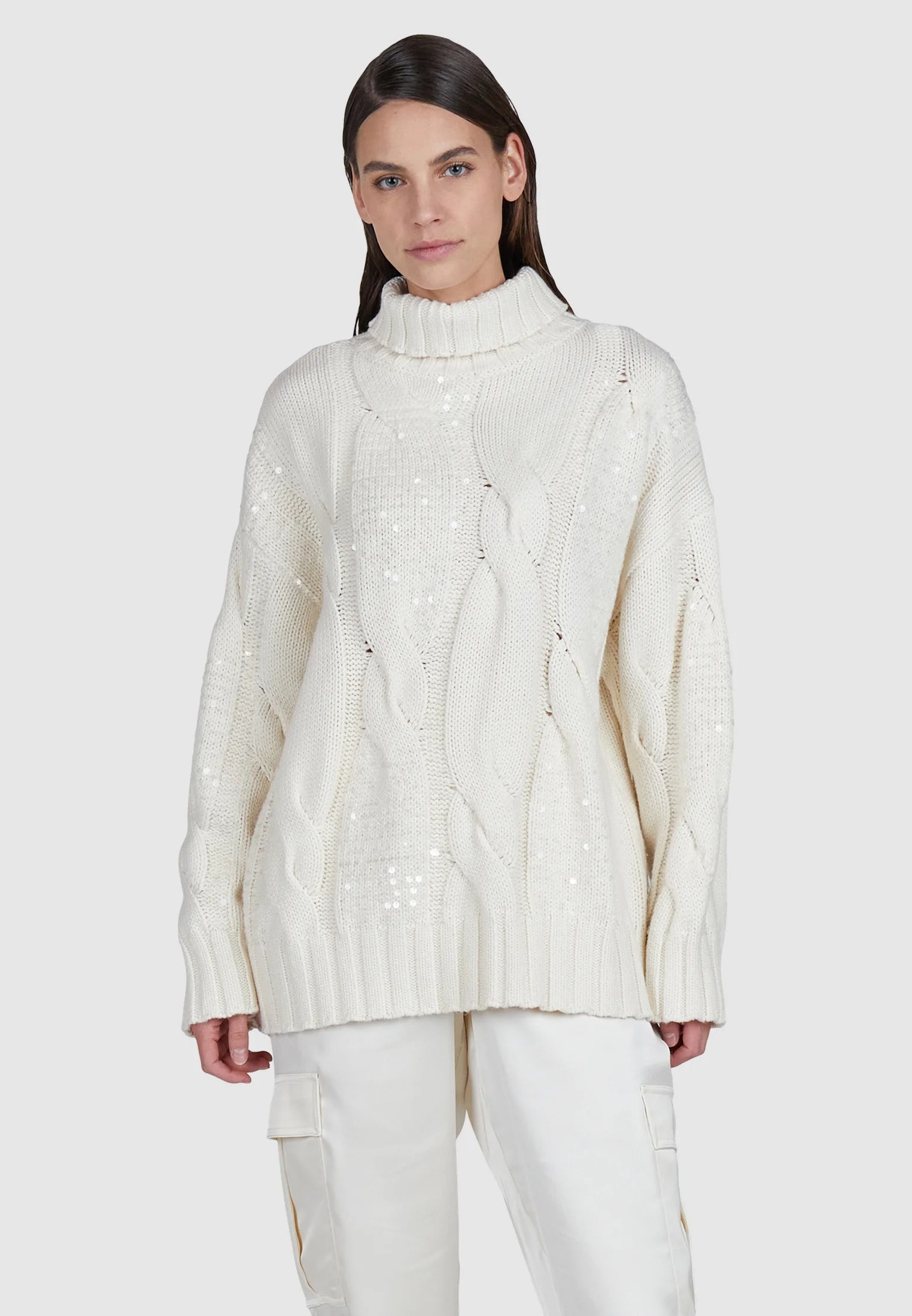 Discover our sweater with transparent sequins, made from a soft cotton blend and embellished with embroidered sequins for a sparkling accent. Add a touch of glitz and glamor to your outfit with this sweater.