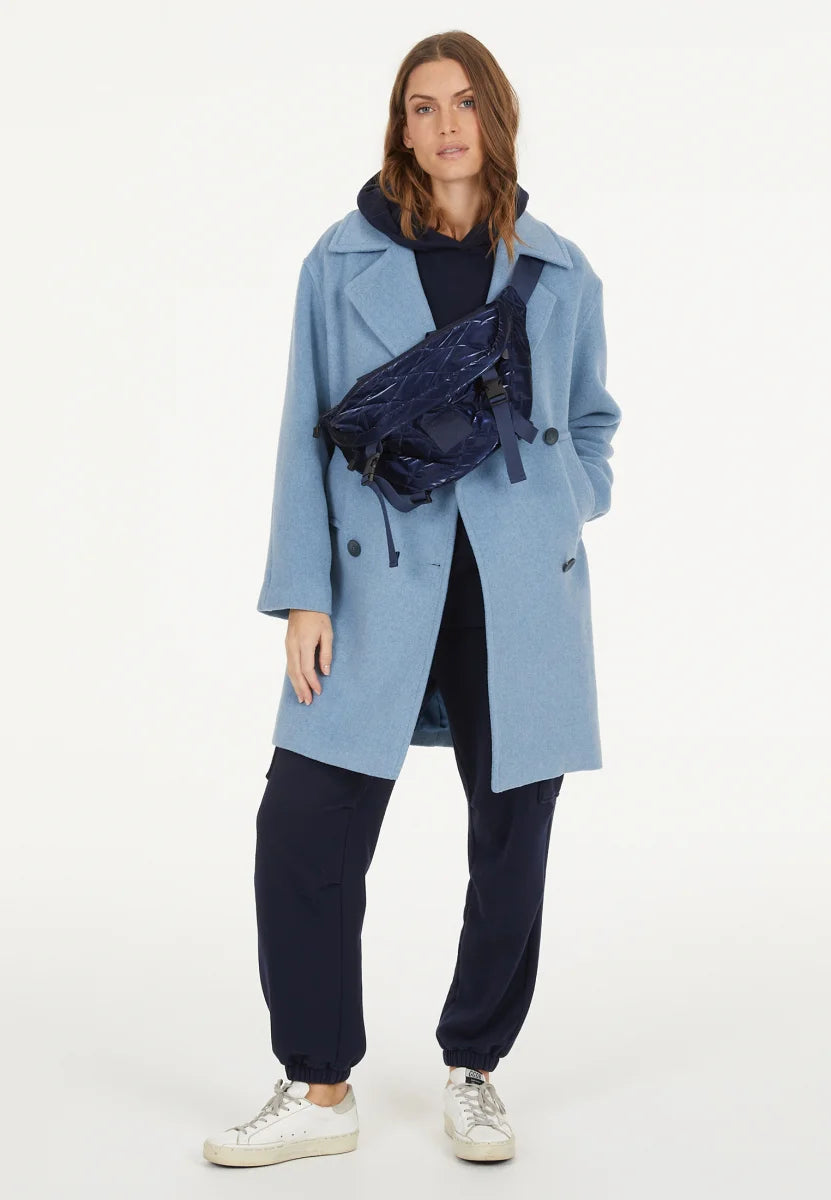 Made from water-repellent outdoor satin, this bag combines functionality with a stylish finish. Wadded quilting, a logo badge and contrasting details add fashionable accents, while adjustable straps ensure versatile carrying options.