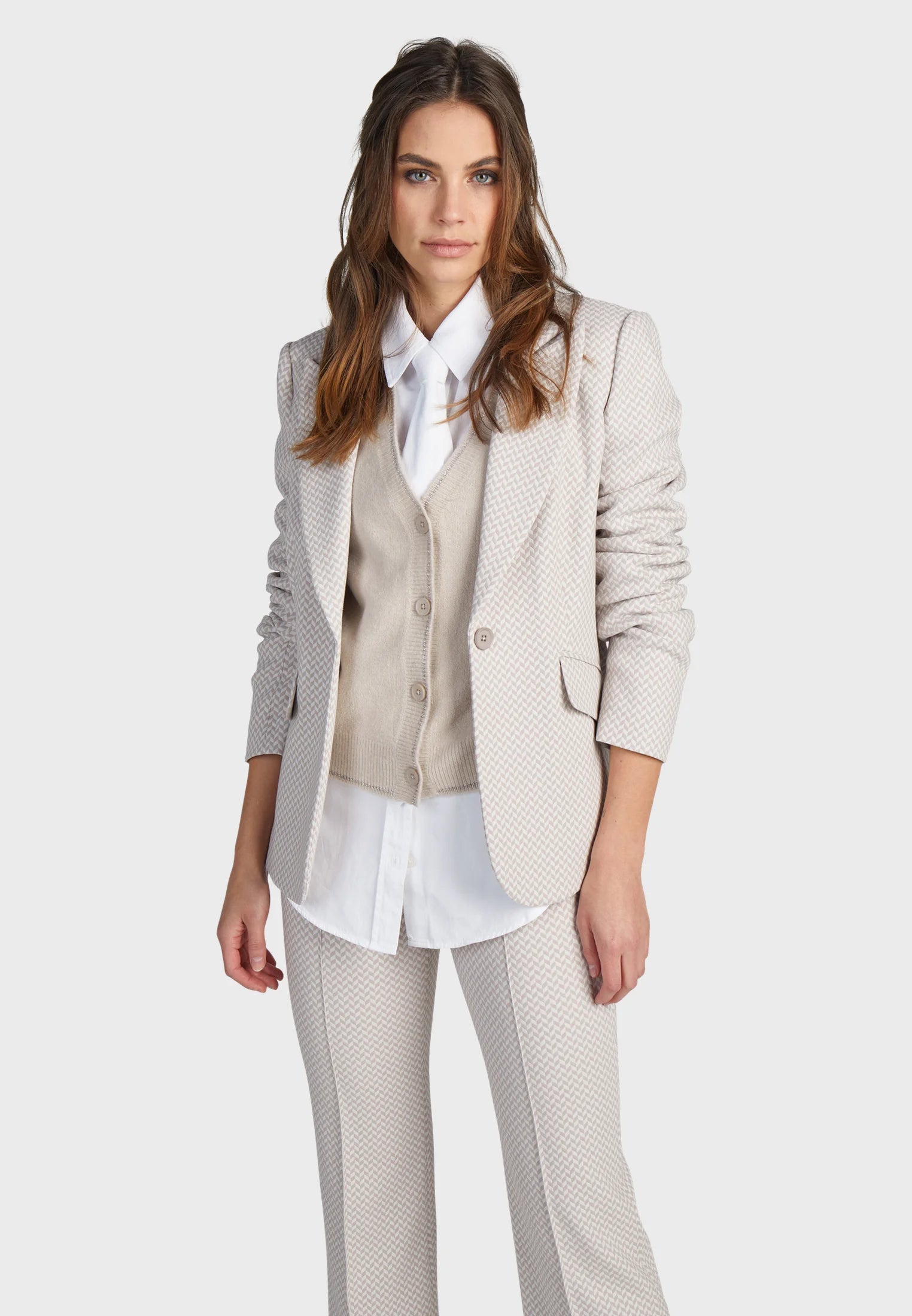 Discover the slim-fit blazer made from tonal jacquard, crafted from an elastic viscose blend with a soft feel. This blazer combines elegant texture with high comfort. Perfect for a stylish and modern look.