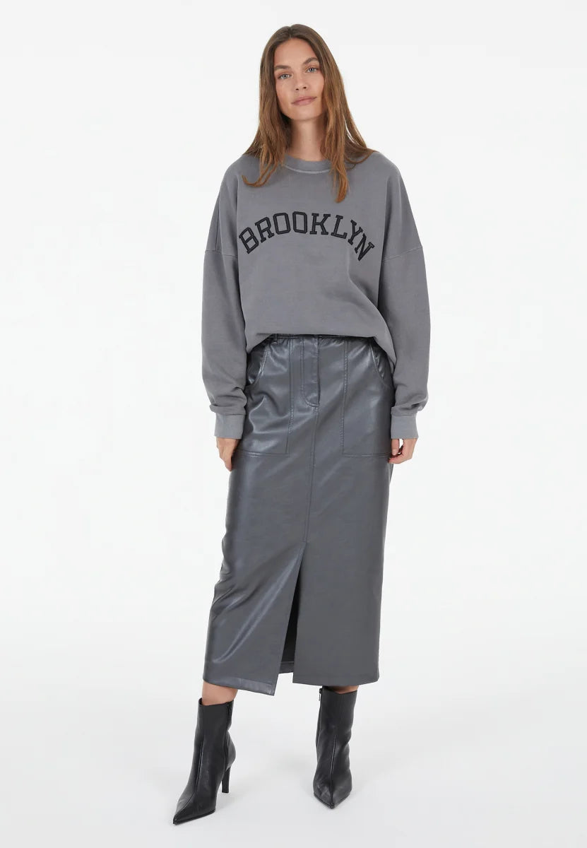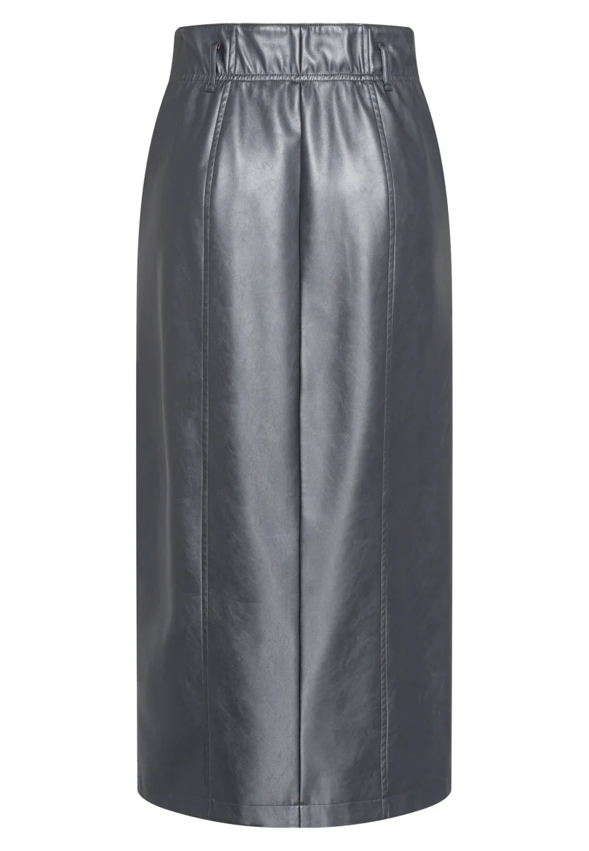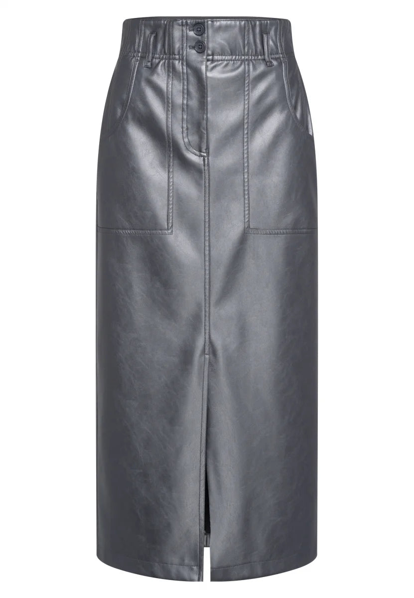 This maxi skirt made of vegan stretch leather combines edgy style with a timeless design. The elasticated waistband ensures a high level of comfort, while workwear details and a slit at the center front give the look a modern touch. An expressive piece for individual styles.