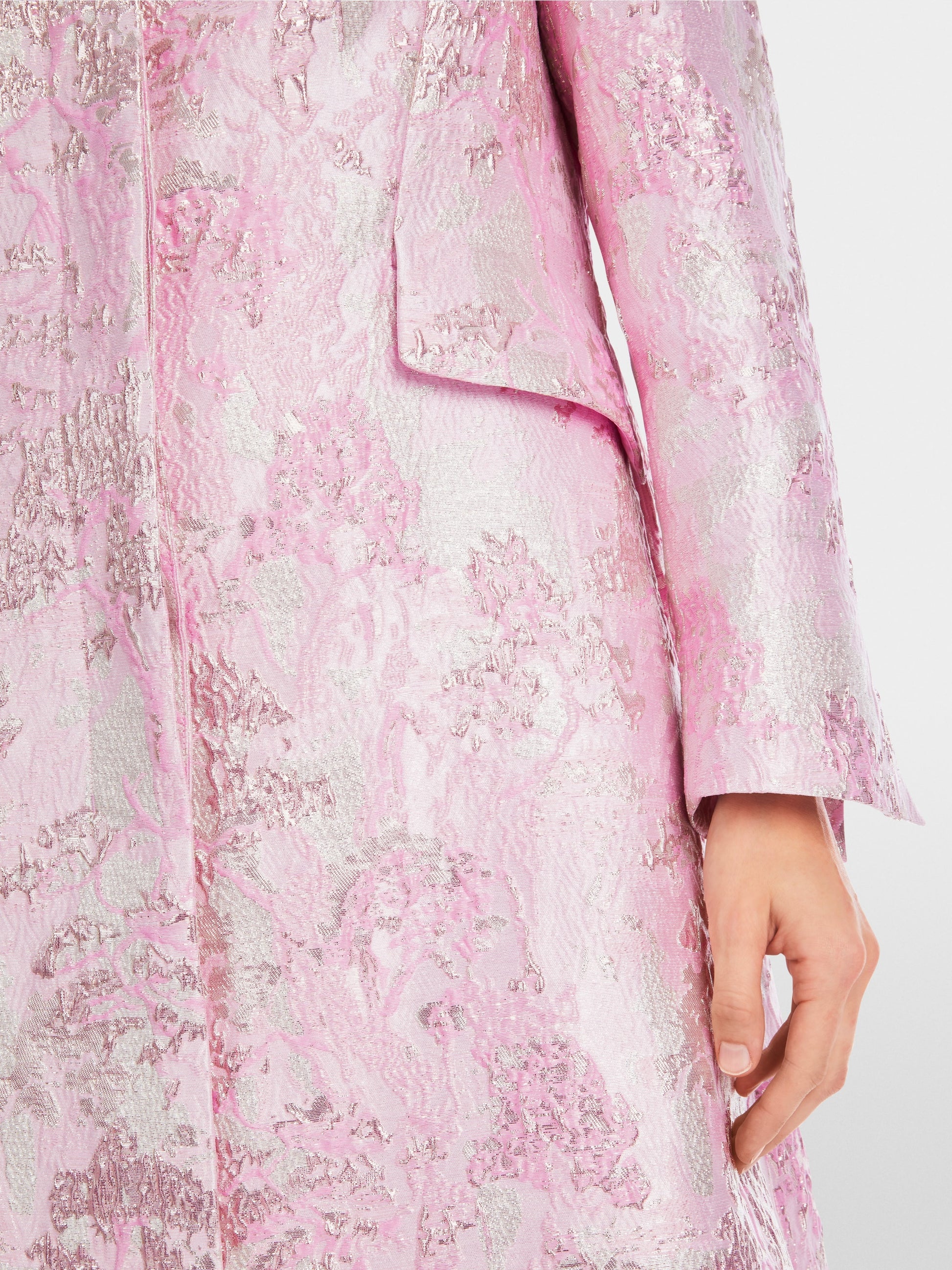 Inspired by the eighties: coat made from shiny brocade. The shape is close to the body and designed with princess seams. Stylistic details include the Kent collar, concealed buttoning and flap pockets. The lining ensures a perfect fit. Looks trendy with minis.
