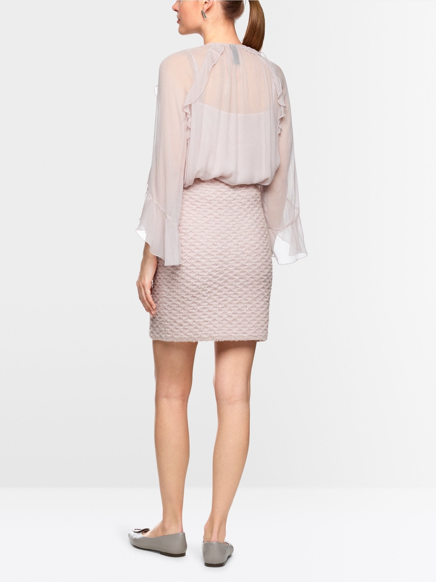 Figure-hugging skirt that falls to the knee and is made from a luxurious yarn blend. The effect yarn gives this skirt its particularly interesting look and a subtle shimmer. This item is knitted and finished in Germany. The individual parts are further processed at European partner companies. It is therefore Knitted in Germany.
