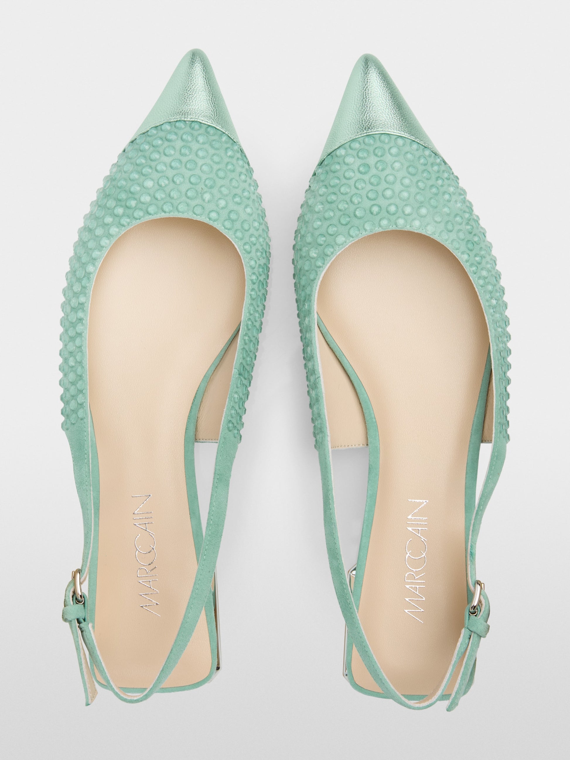 For great times: slingbacks with gold and glitter! These slingbacks are made from suede and decorated all-over with matching rhinestones. The toe is accentuated with gold while the heel has a polished stone finish. The leather insole and lining ensure wear comfort.