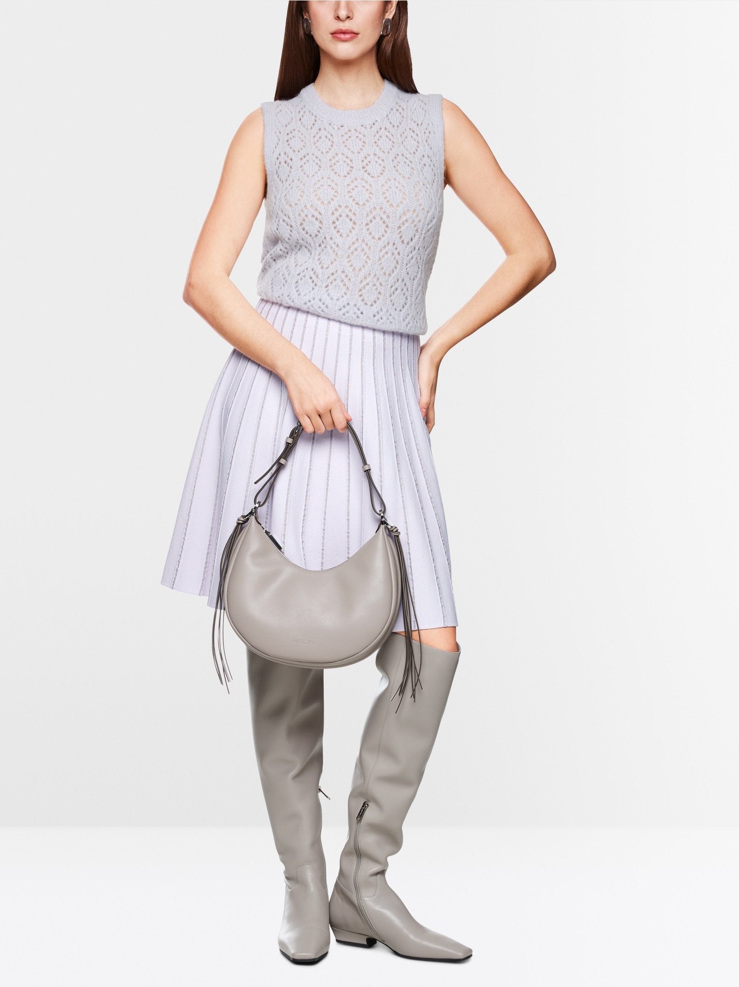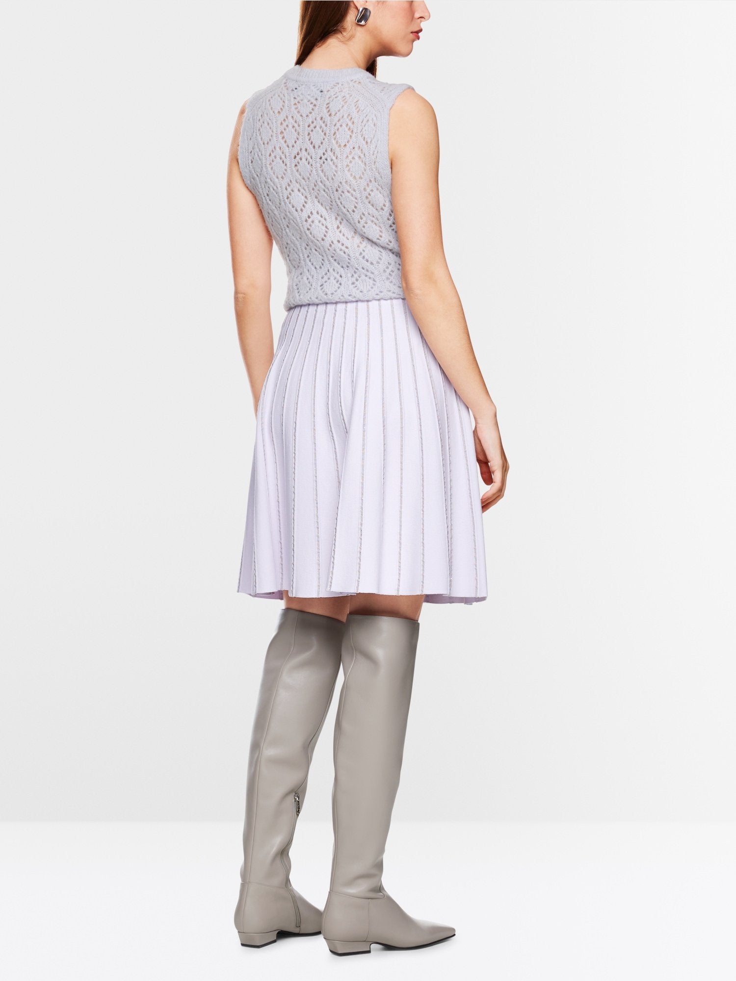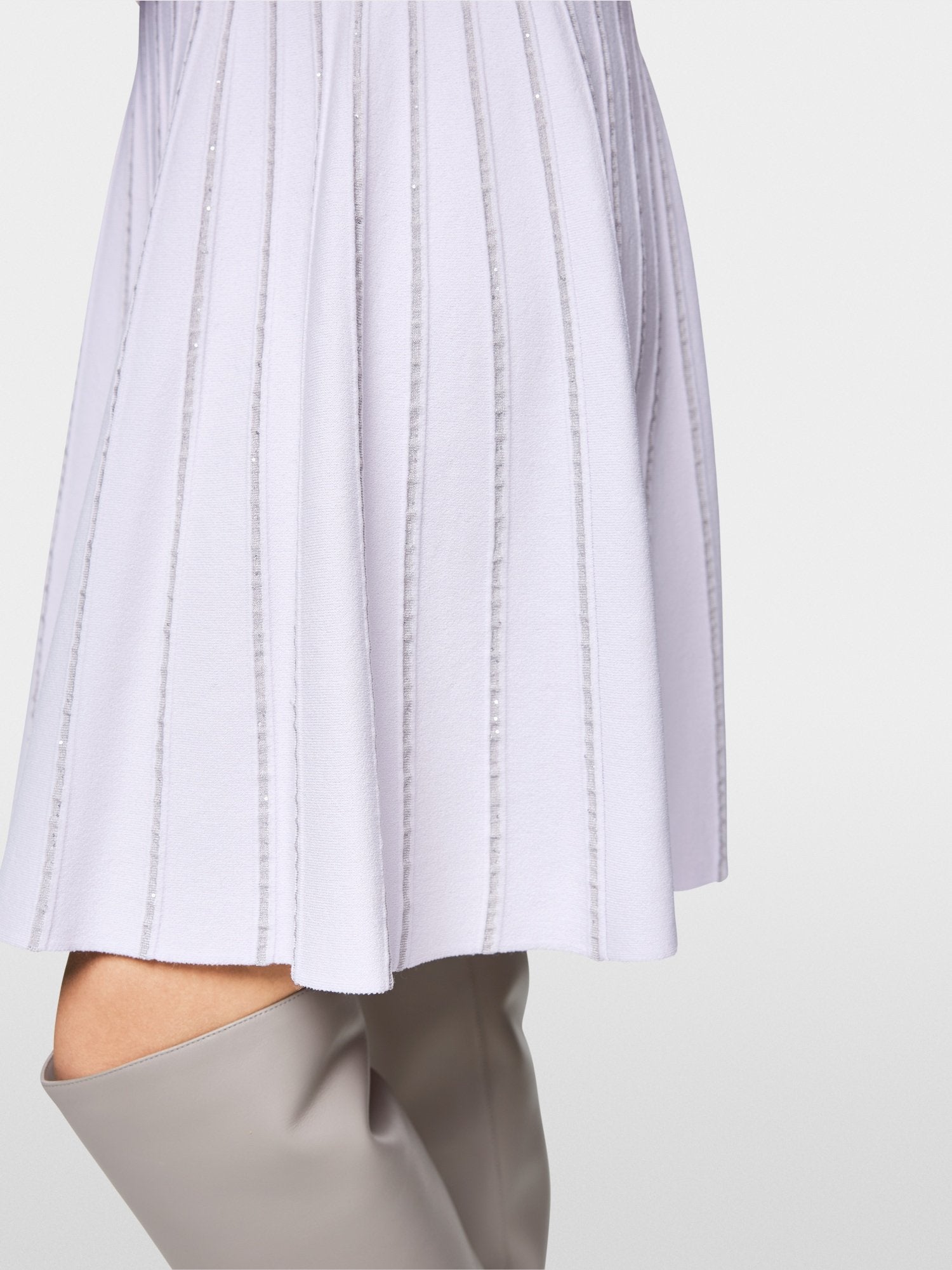 Classic A-line skirt with sequinned yarn stripes, made from stretch knited material. The length falls just above the knee. This skirt is knitted and finished in Germany. The individual parts are further processed at European partner companies. This item is therefore Knitted in Germany.