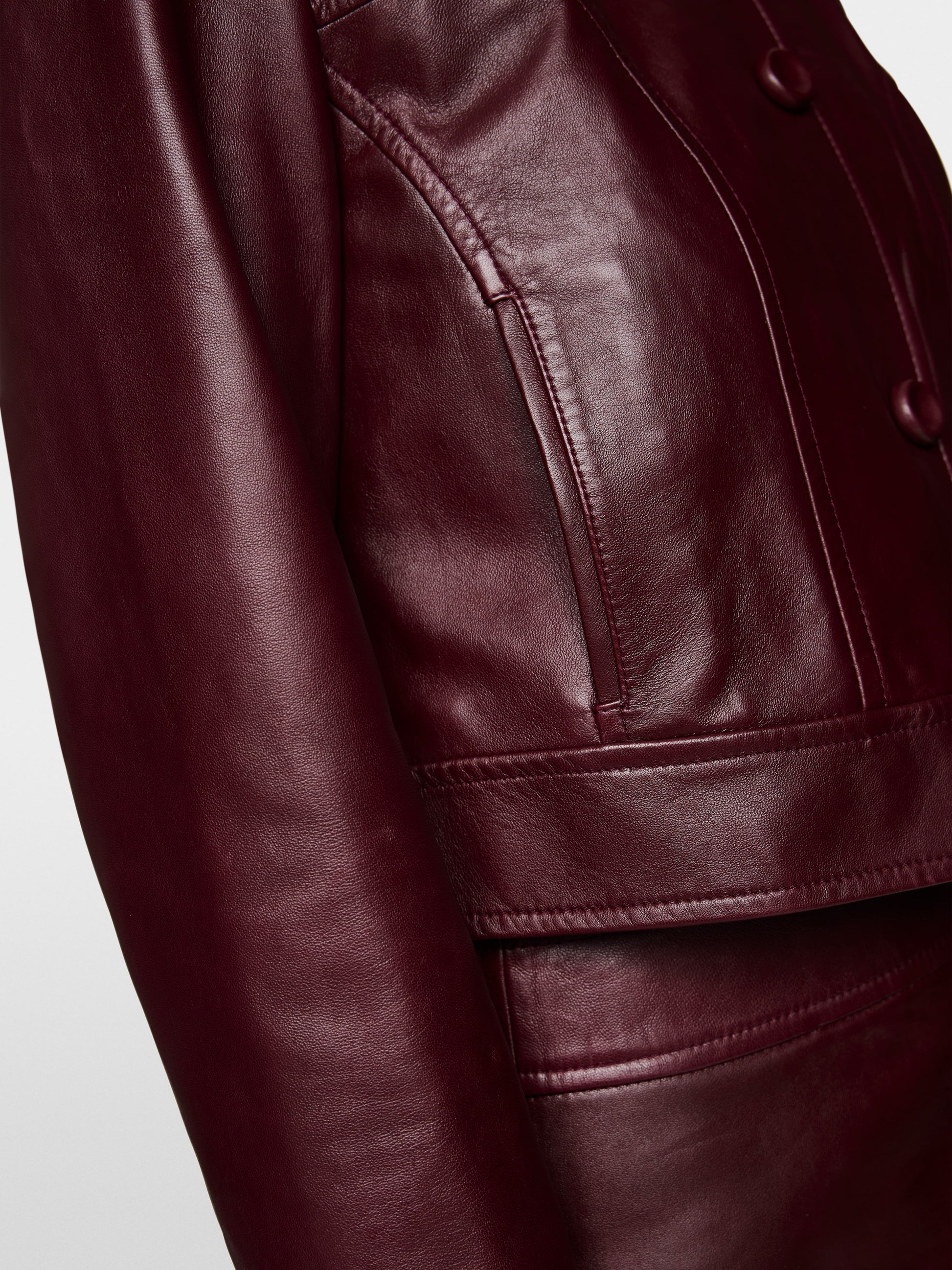 This short leather jacket impresses with its modern design and practical details. It has press studs and a classic collar, while the leopard print lining is a special eye-catcher. Side pockets offer additional comfort. With its straight cut, this jacket has a timeless fit for a variety of combinations. Ideal for fashion-conscious women who are looking for a stylish jacket.