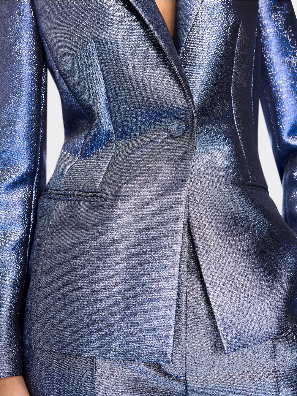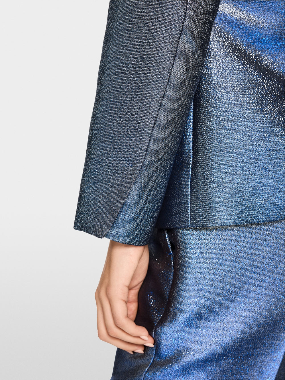 With its shimmering outer material, this blazer adds a touch of glamour to any outfit. It is cut to fit and features a rising lapel. With its firm fabric and padded shoulders, the jacket always fits perfectly. Piped pockets and a slit at the back complete the typical style.