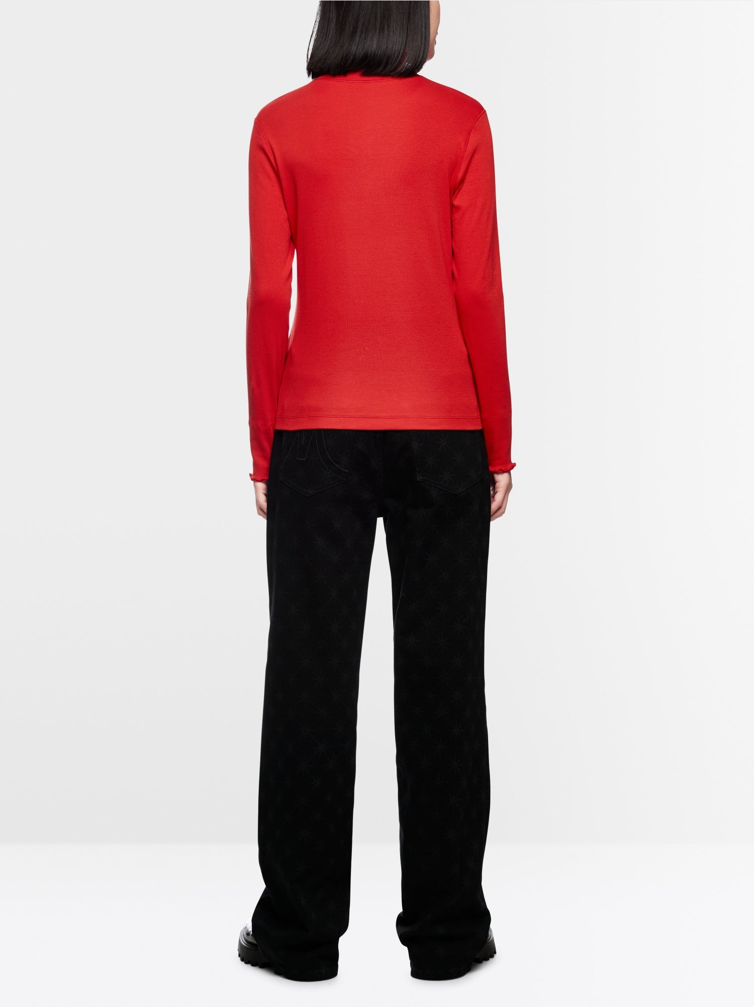 Slim-fit long-sleeved shirt in fine ribbed material, in plain colours with rolled hems on the sleeves and neckline for subtle details. Made from a soft cotton and elastane blend for optimal comfort and a perfect fit.
