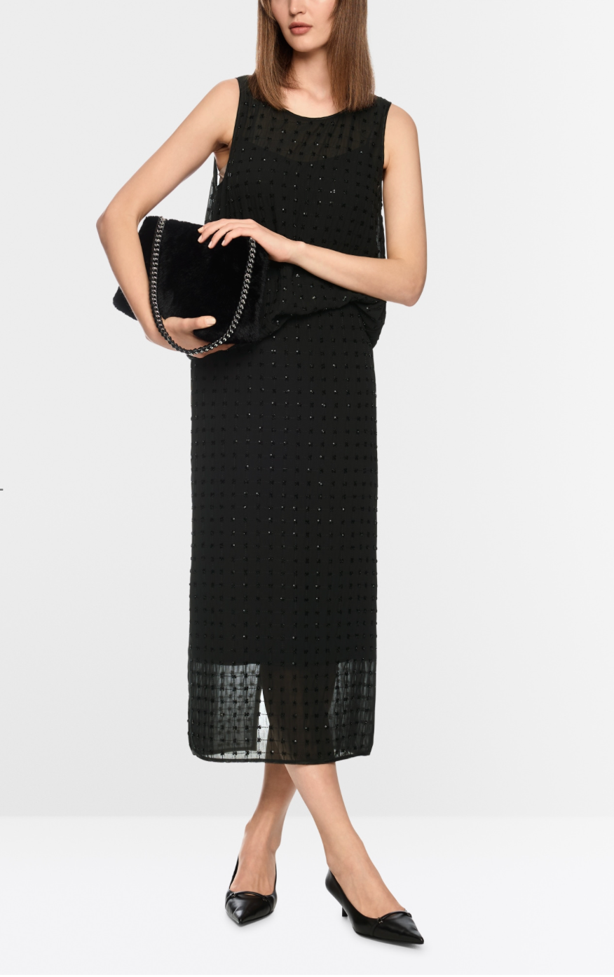 This calf-length skirt made of flowing microfibre has a straight cut and is embroidered with shimmering mini sequins. A back slit and zip ensure comfort and freedom of movement. With an inner lining – perfect for elegant occasions.