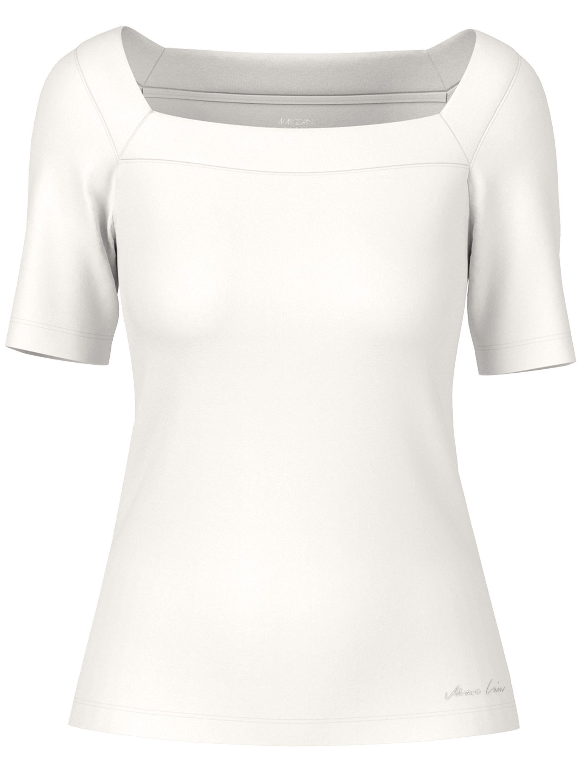 This T-shirt brings variety to classic basics with its square neckline. It fits close to the figure. Its quarter-length sleeves come in a raglan cut. Made from soft stretch cotton, this T-shirt is flattering against the skin.