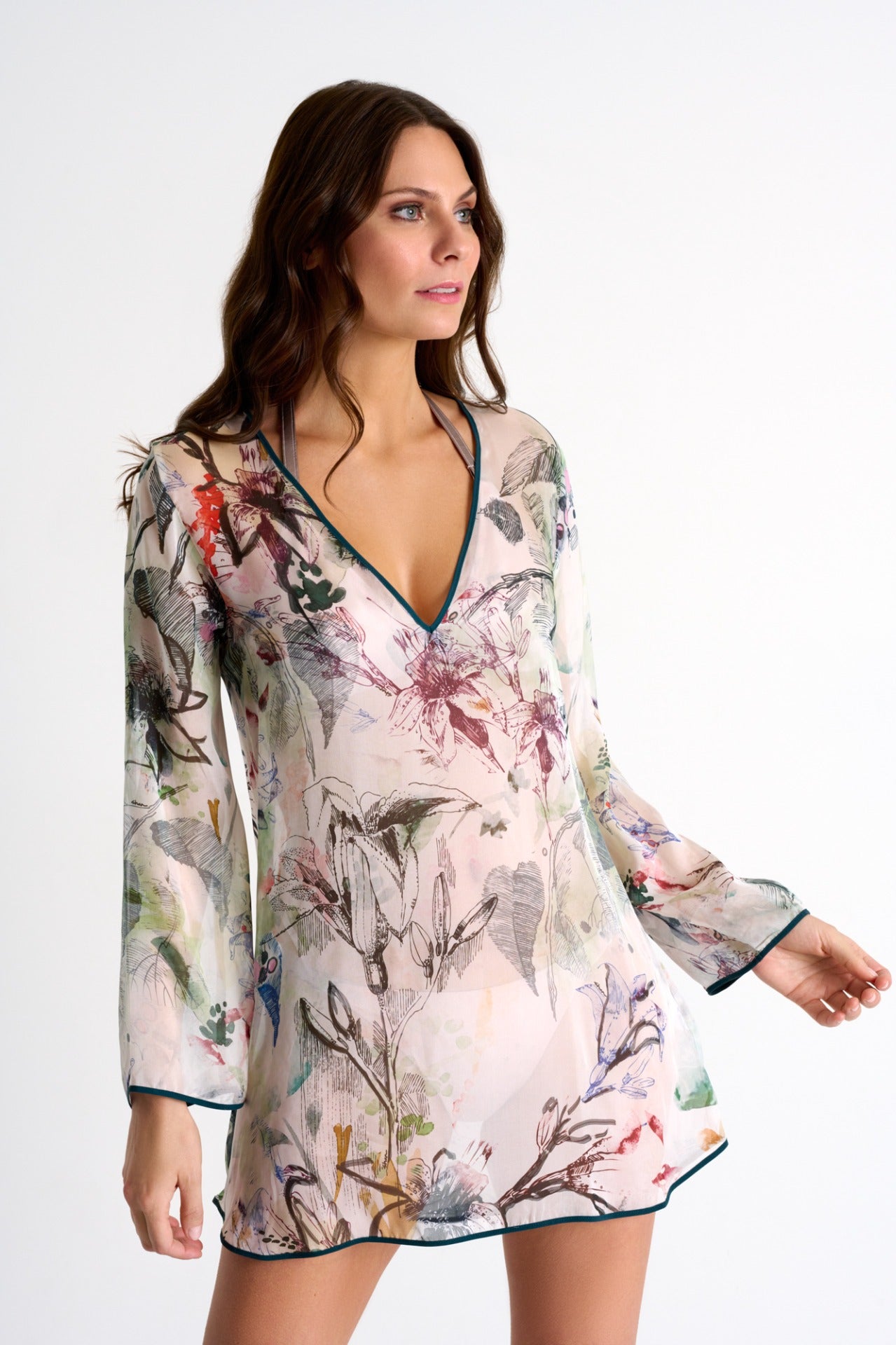 Crafted from the highest quality of washable italian silk, this tunic is an ideal and light piece to wear over any swimsuit or with our signature leggings.