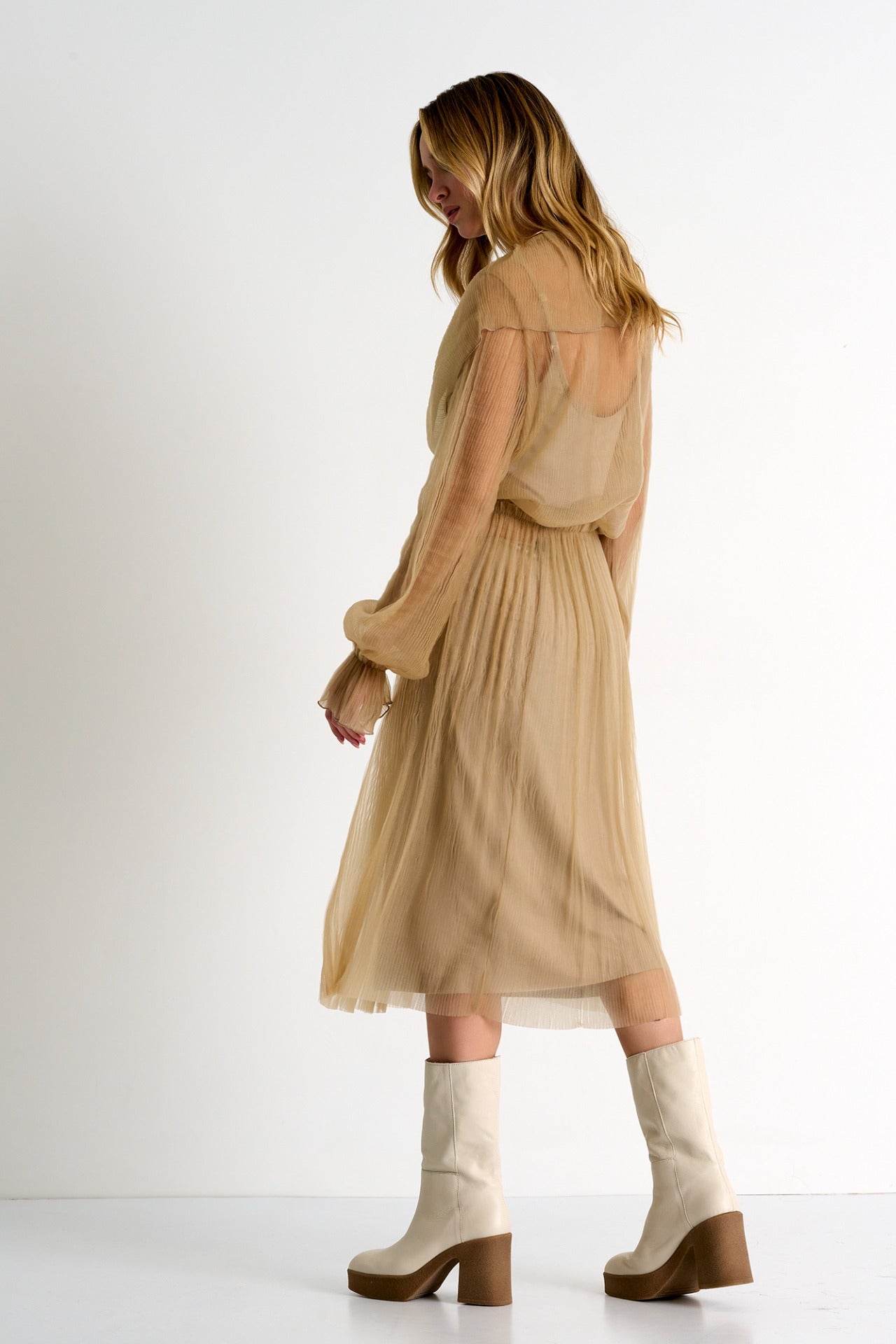 Long skirt pleated mesh. A beautiful flare design for a classic look.
