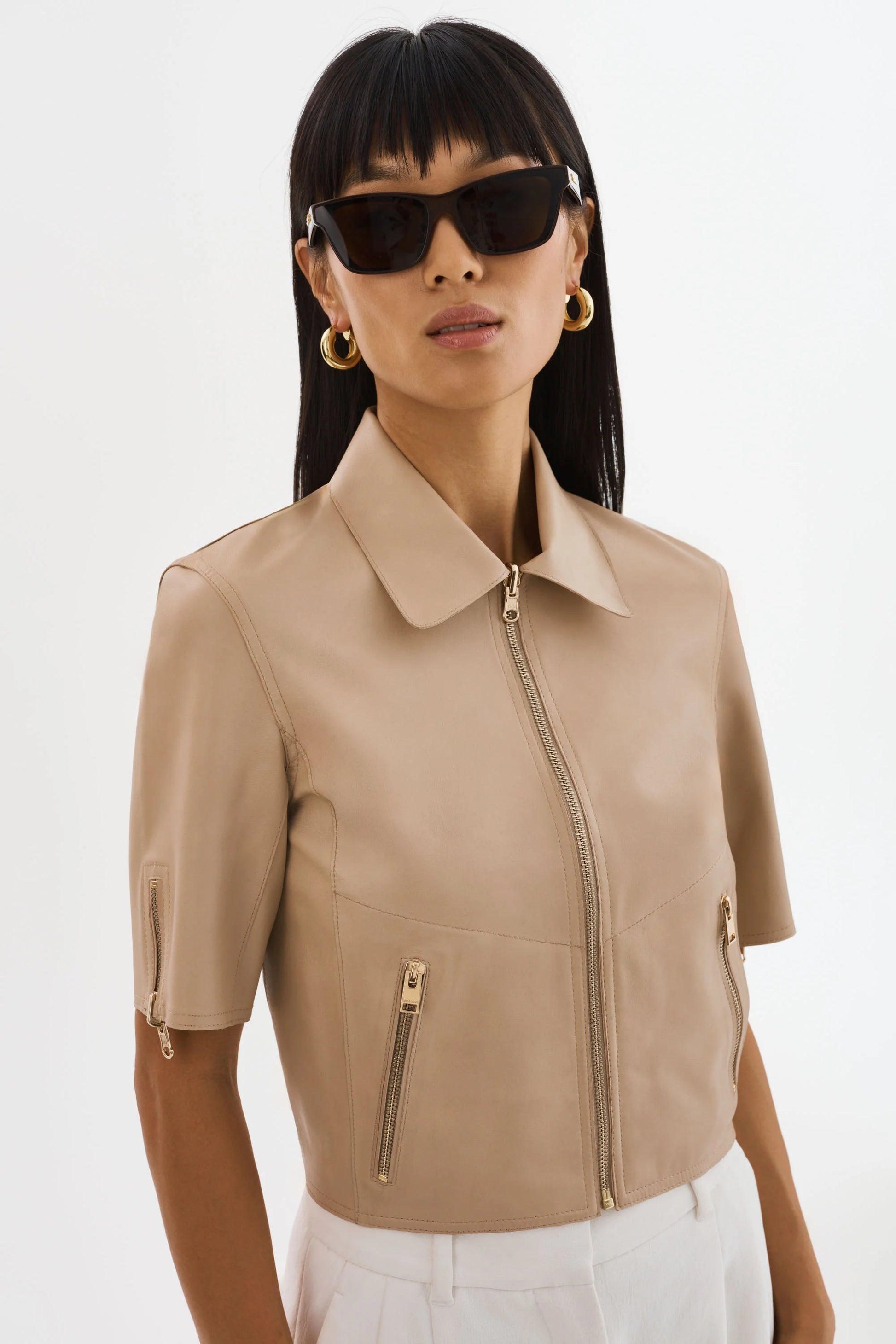 The SEVANA is a versatile essential for your wardrobe. Featuring a metallic foil interior, it offers double the styling possibilities. Zipper-detail short sleeves add a touch of edge to the sophisticated silhouette. Pair it with high-waisted shorts and a simple white tee for a daytime look, or layer it over dresses for a night out.