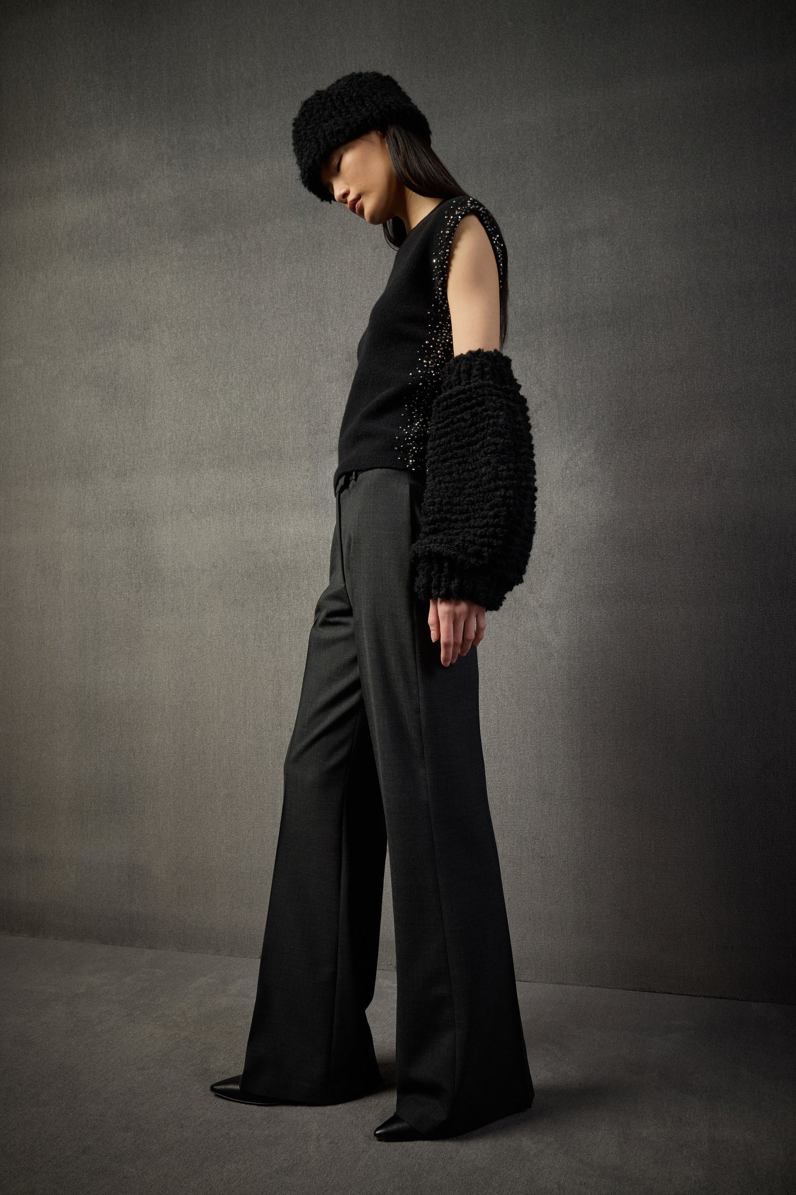 BLACK WOOL AND CASHMERE KNITTED TOP. ROUND NECKLINE, SLEEVELESS AND CLINGING FIT. FEATURING SPECIAL BEAD WORK.