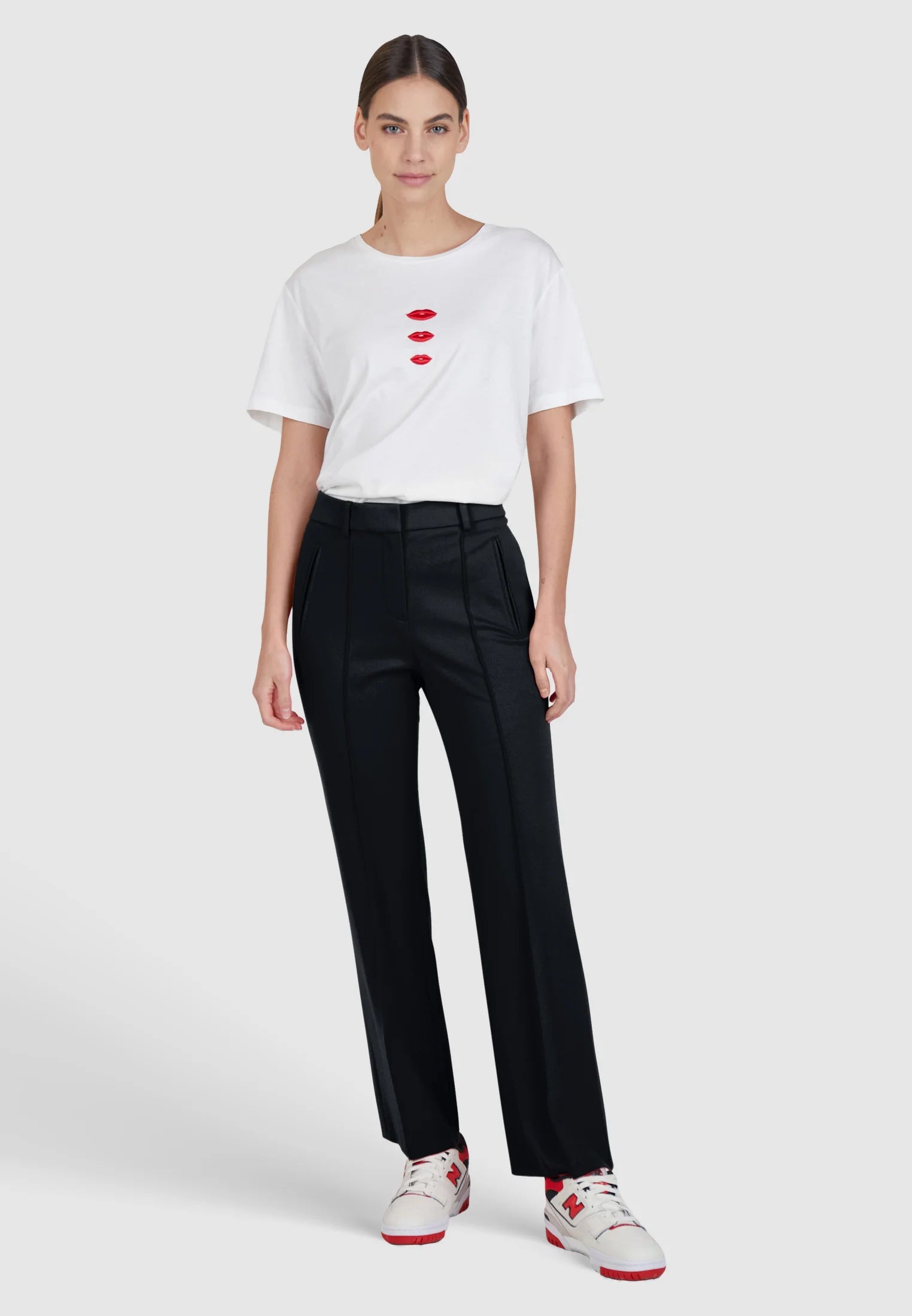 - Slim fit, flared leg