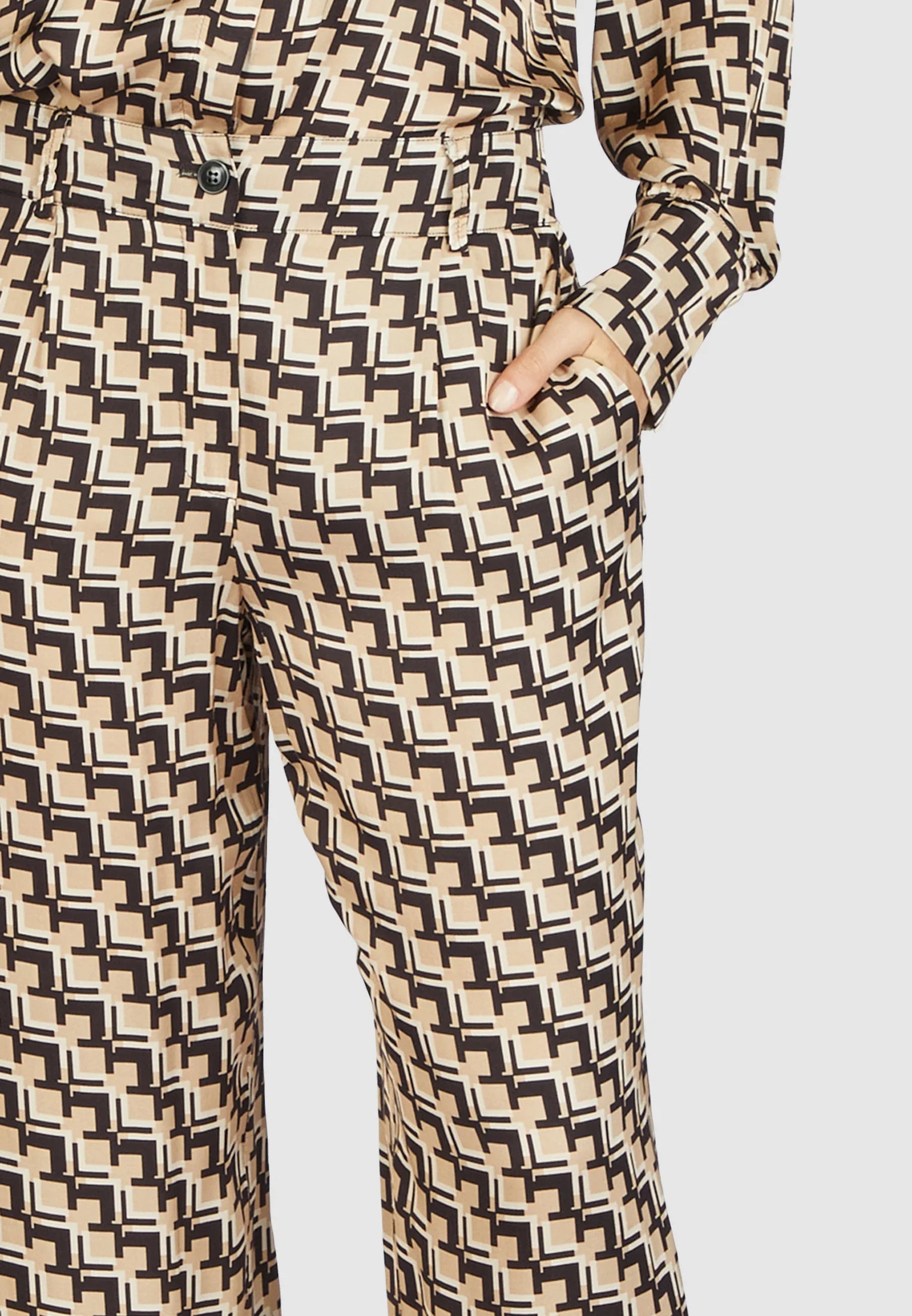 A fashionable, wide cut with a slightly higher waist sets the tone for these trousers with real it-piece quality. These pleated trousers with a trendy graphic print feature two side slit pockets at the front. They are made of high-quality viscose satin and are extremely comfortable to wear.