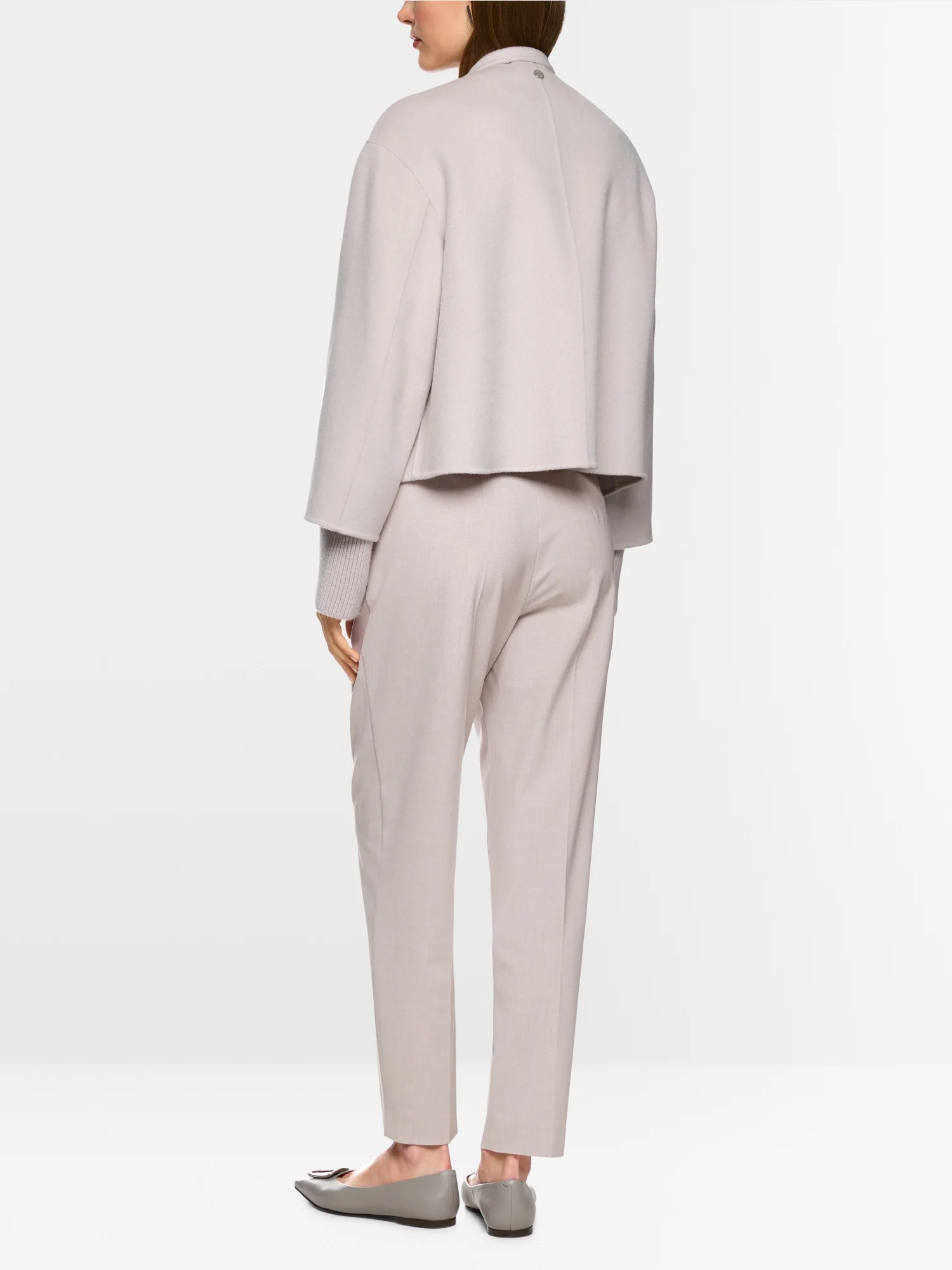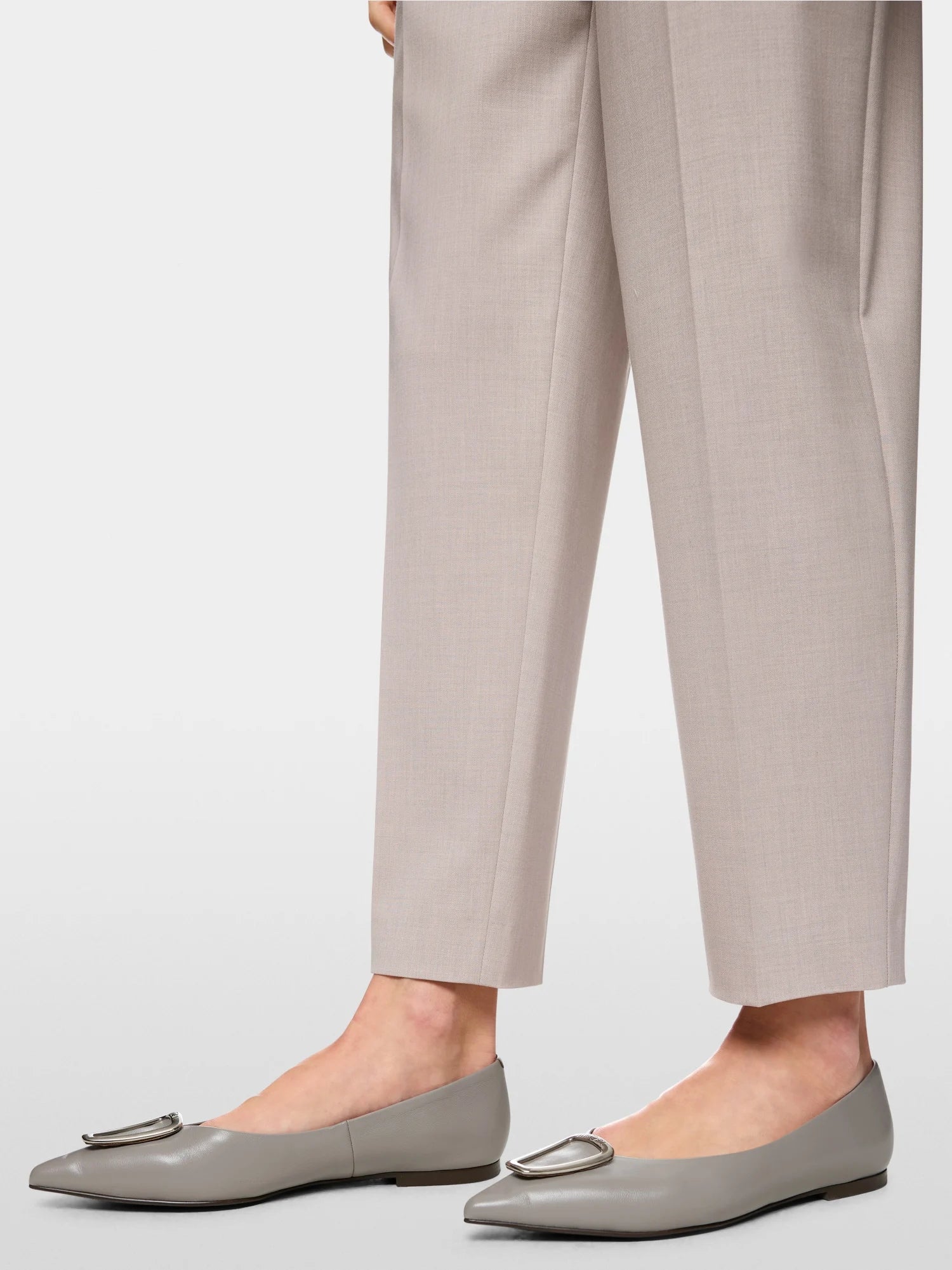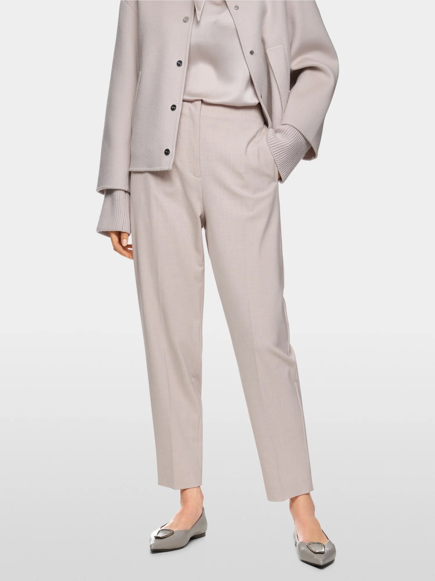 The FORDON trousers have a close-fitting, feminine fit. They have a high-waist fit with a zip and hook fastener. Their special details include the absence of a waistband and two darts on the front. The legs are cut in the 7/8 length and have a crease.