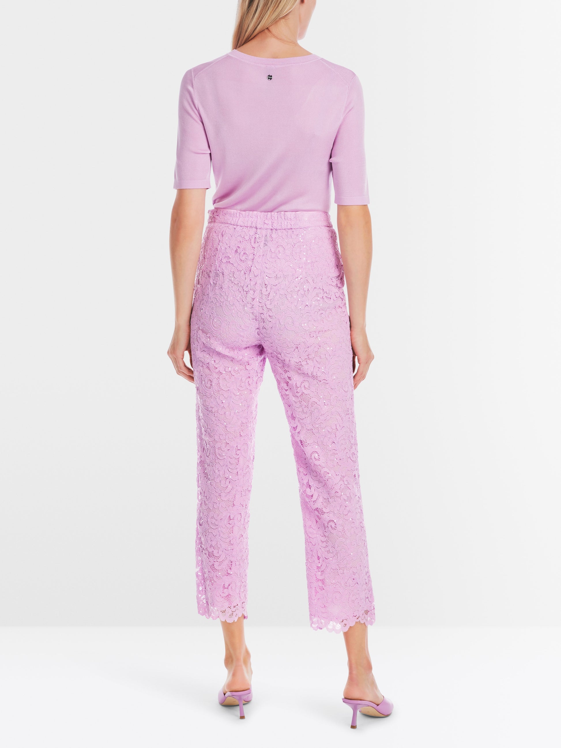 A touch of glamour: the FRIA are made from a lace fabric trimmed with sequins. The viscose lining is a tonal colour. These trousers have a feminine fit, a high waistband and a zip in the side seam. The leg is tapered and cropped.