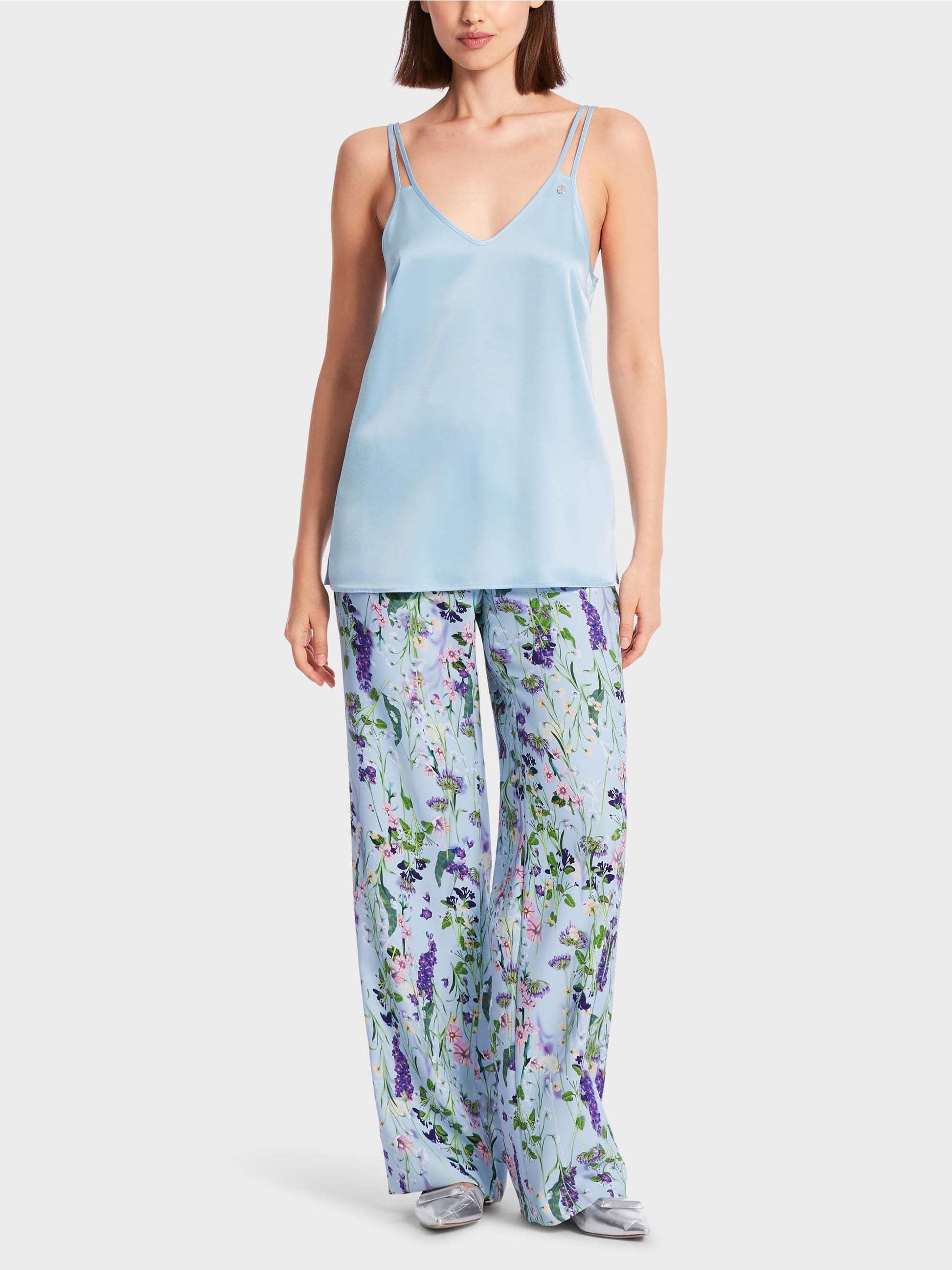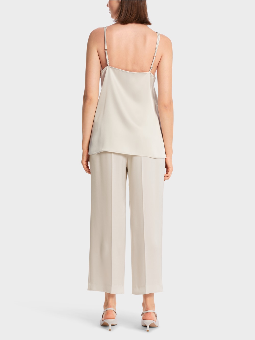 This sleeveless top flatters the figure with its elegant flowing fall. It is made from a material mix with elastane in a tailored silhouette. Two narrow straps and the V-neck emphasise the neckline.