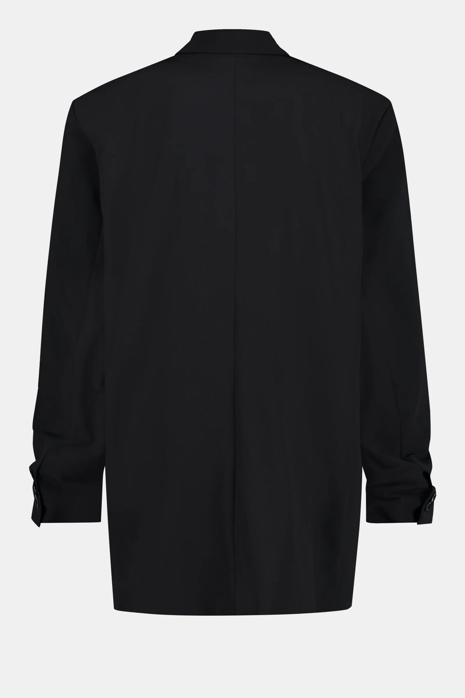 The Logan blazer is a classic, oversized suit jacket made from travel quality. This wardrobe essential is fully lined featuring a double breasted closure, welt pockets and buttoned cuffs.